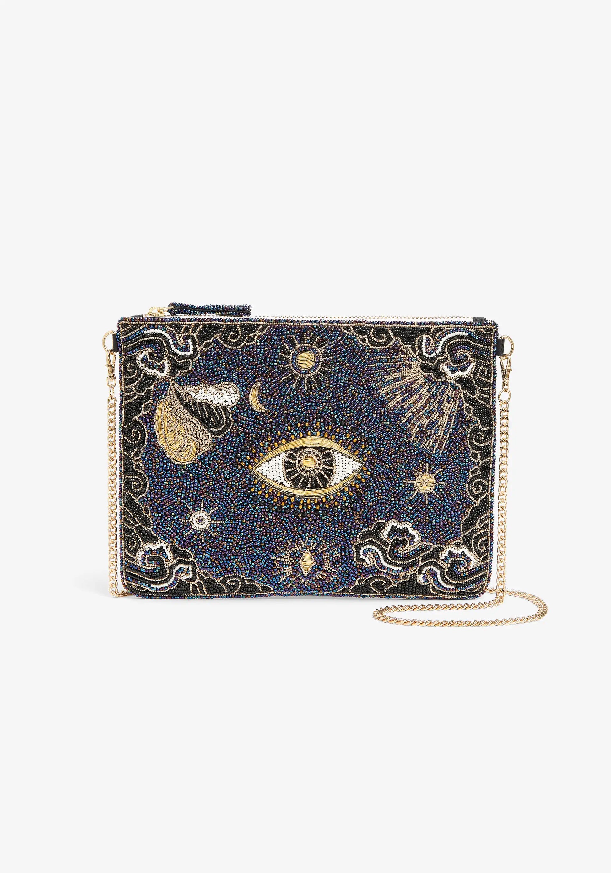 - Pochette entièrement brodée et perlée à la main
