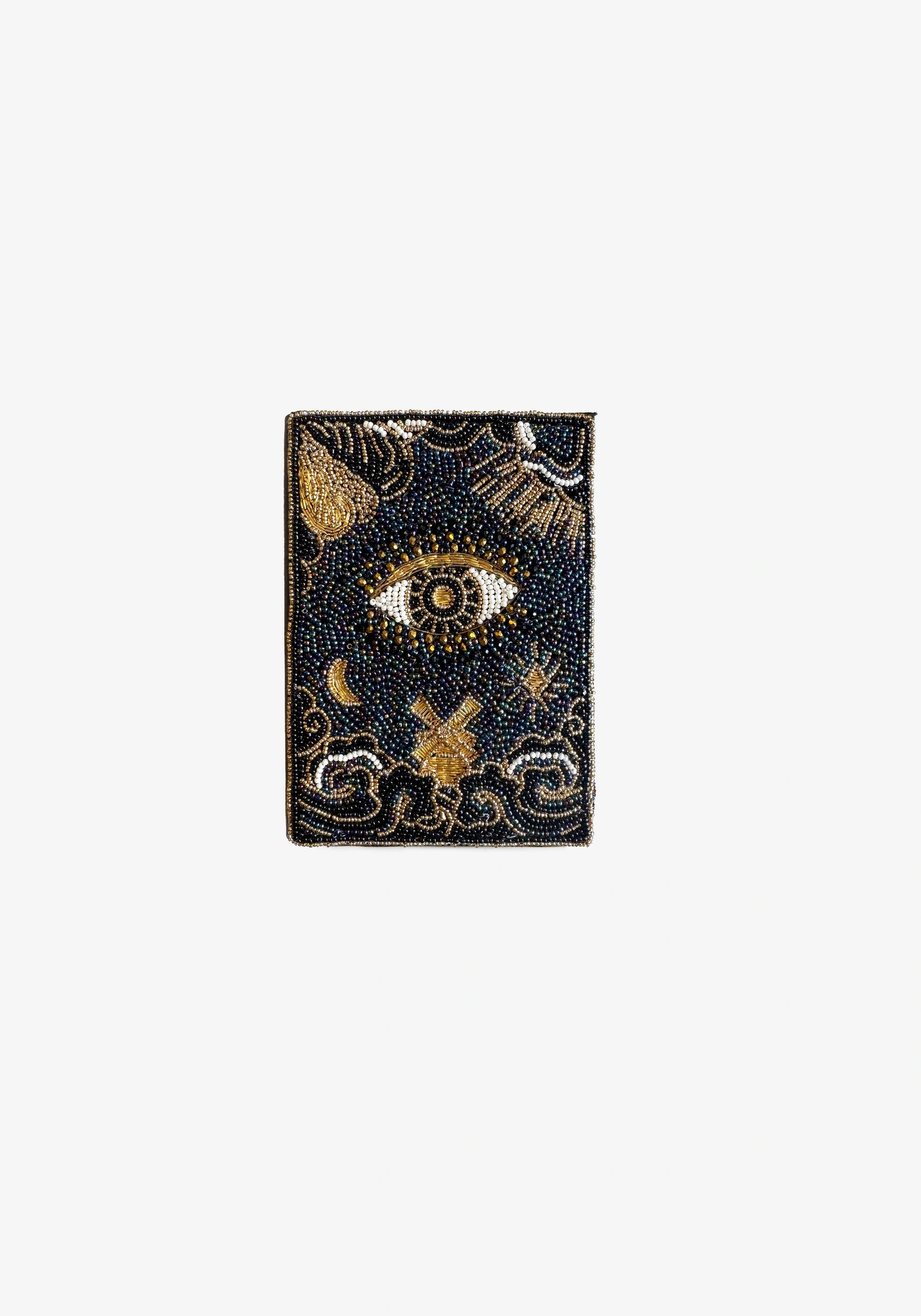 - Porte-cartes en cuir de vachette noir, brodé à la main