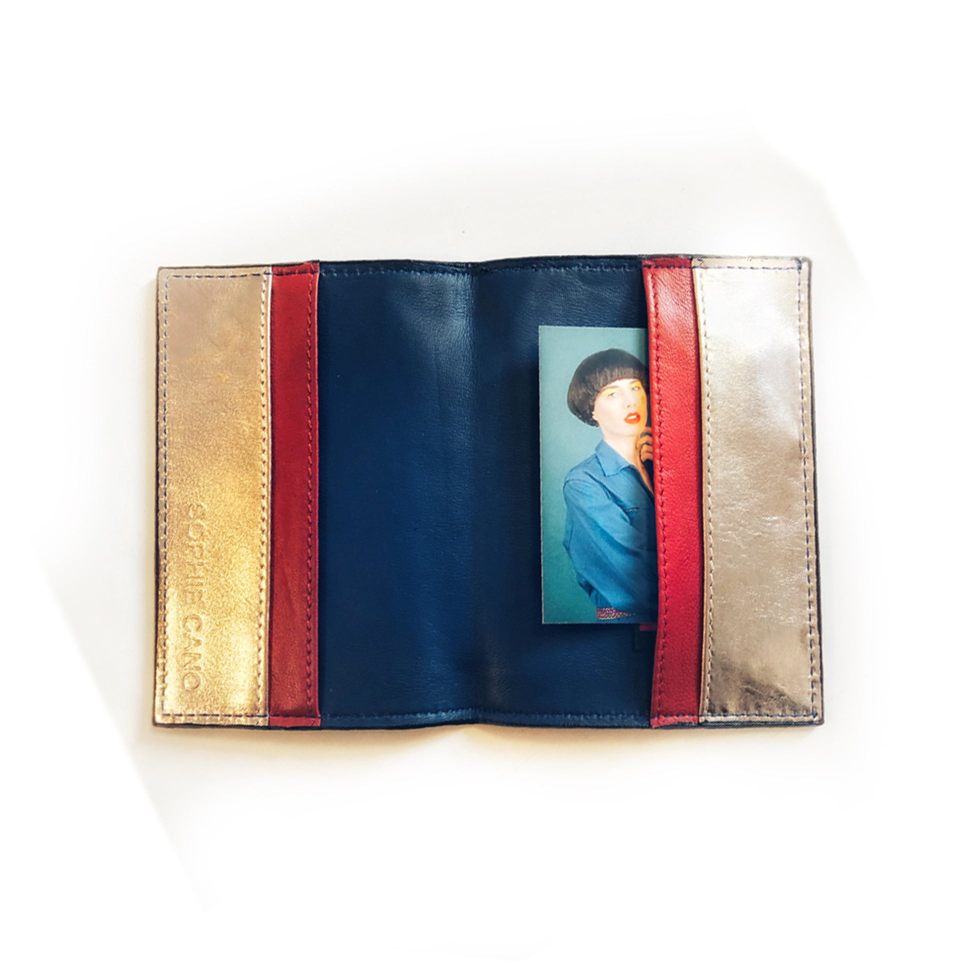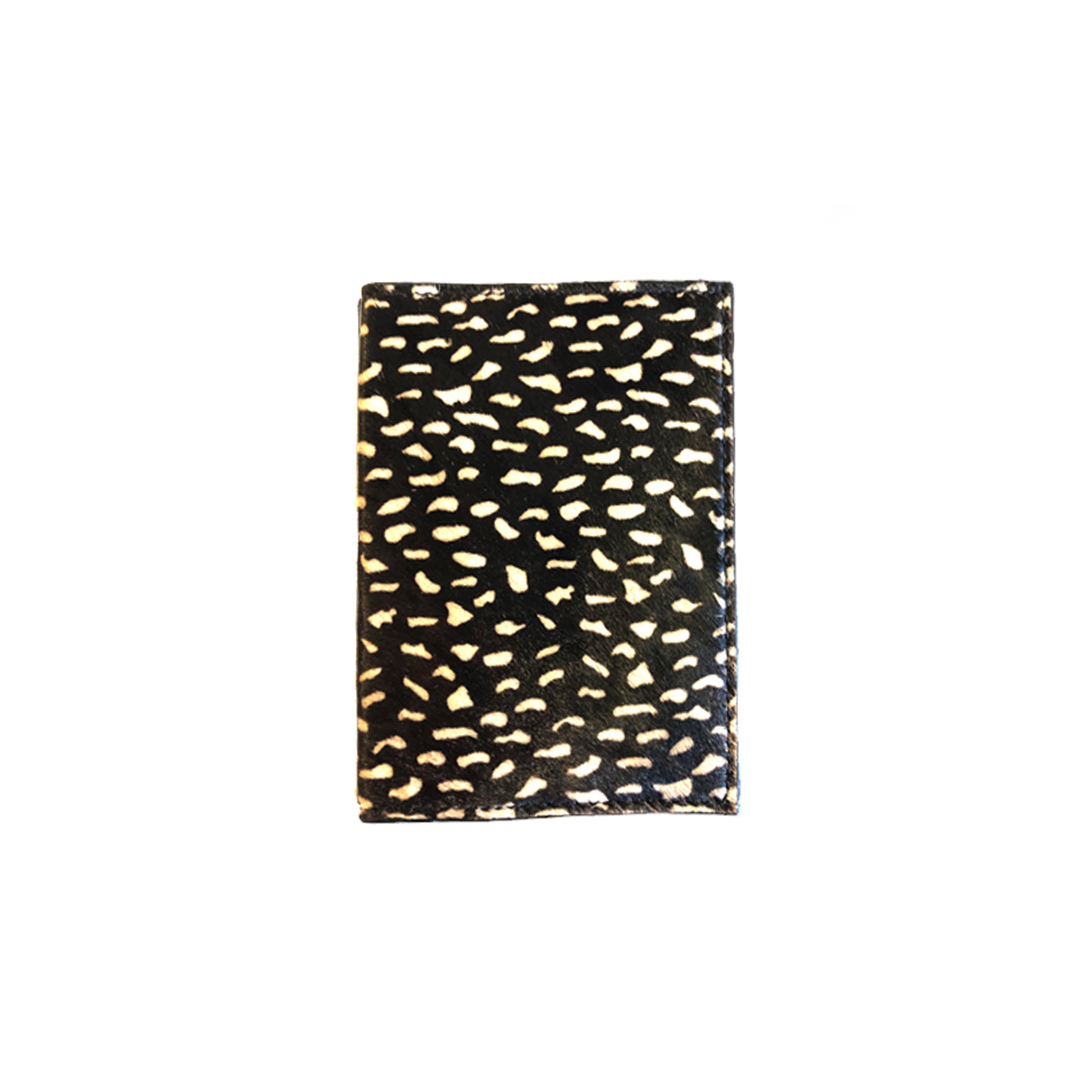 - Porte Passeport en cuir napa d'agneau et cuir façon poulain imprimé noir et blanc